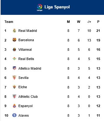 Klasemen La Liga