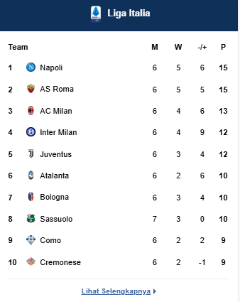 Klasemen Serie A 2025/2026
